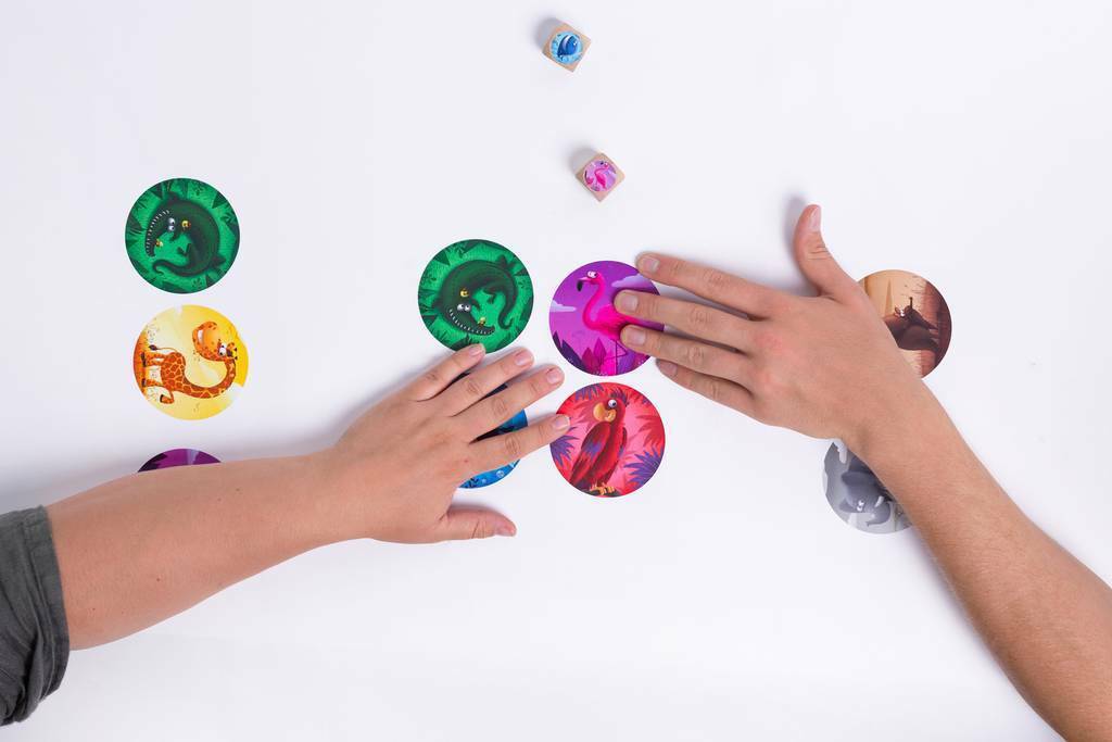 The photo safari on the table is opened; keep your eye out and your camera on! One player rolls the dies then all together tries to be first to take a pic of the animals from the dice. Hunting for new pictures don't forget to watch out for collected ones! A competitive and fast-paced game is a perfect icebreaker for kids' parties and a good filler for family time together.